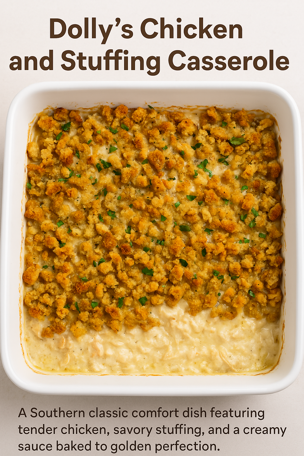 Dolly’s Chicken and Stuffing Casserole is more than just a dish—it’s a memory on a plate. Rich, creamy, and packed with flavor, it brings the warmth of Southern kitchens to your table. Whether you’re serving it at Sunday dinner or a holiday gathering, it’s guaranteed to be a crowd-pleaser.