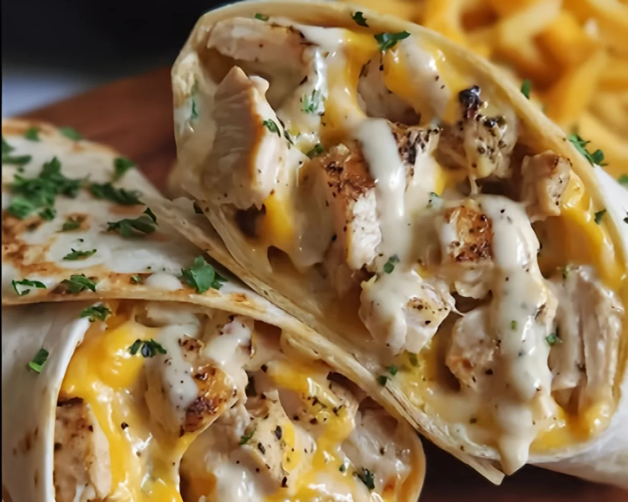 Imagine tender, juicy chicken, infused with a symphony of garlic and herbs, nestled in a warm, soft wrap alongside a generous blanket of melted cheese. These aren’t just wraps; they’re a quick route to comfort food bliss, perfect for a weeknight dinner or a satisfying lunch. The creamy garlic sauce elevates simple ingredients into something truly special, making this a family favorite in minutes. Forget complicated recipes – this is fast, flavorful, and utterly addictive.