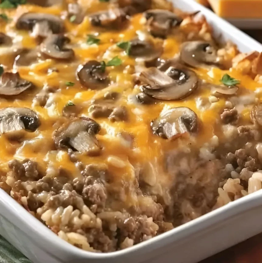 Imagine a comforting casserole where tender, browned beef and earthy mushrooms nestle…