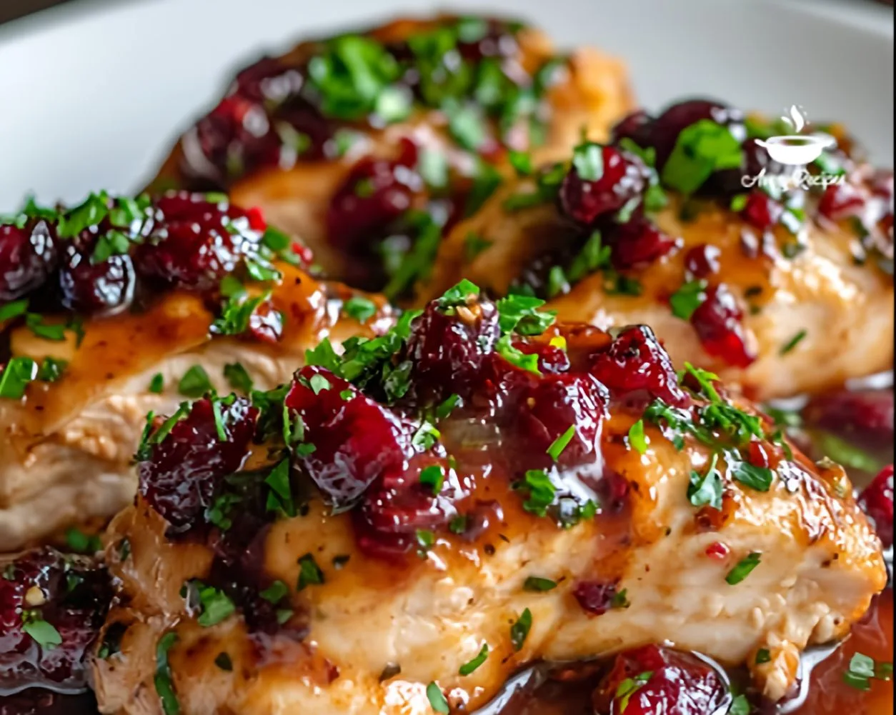 - Pour the cranberry sauce mixture over the chicken thighs, ensuring they are well coated.